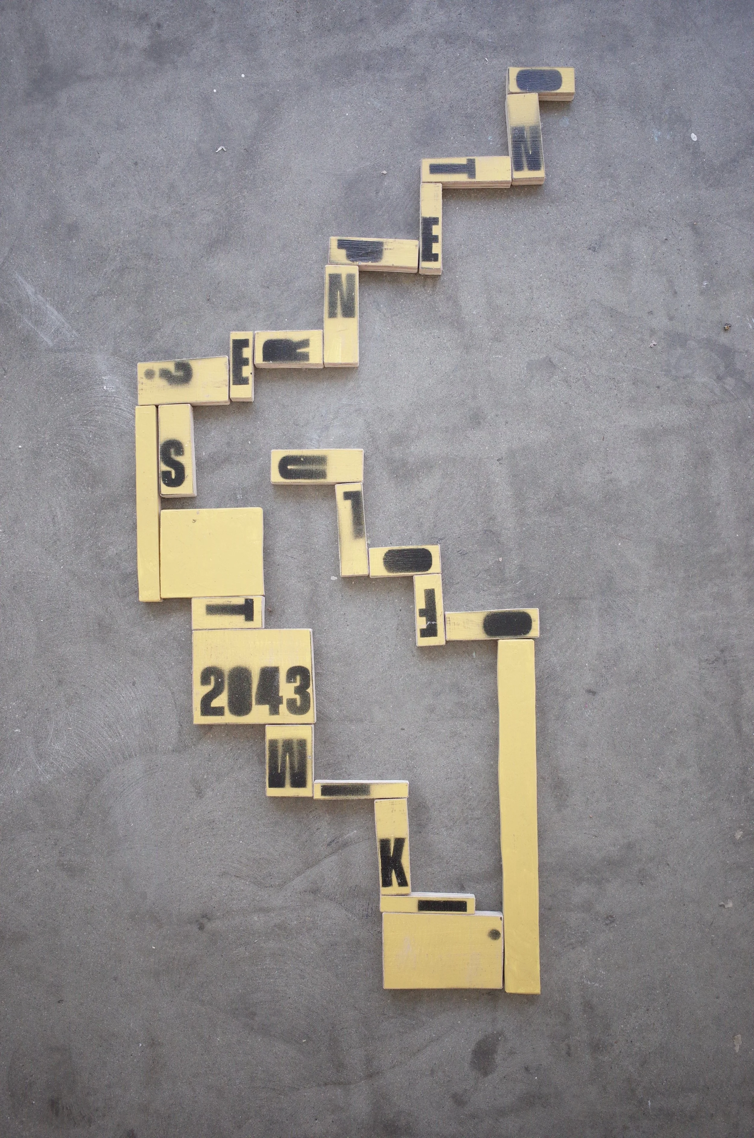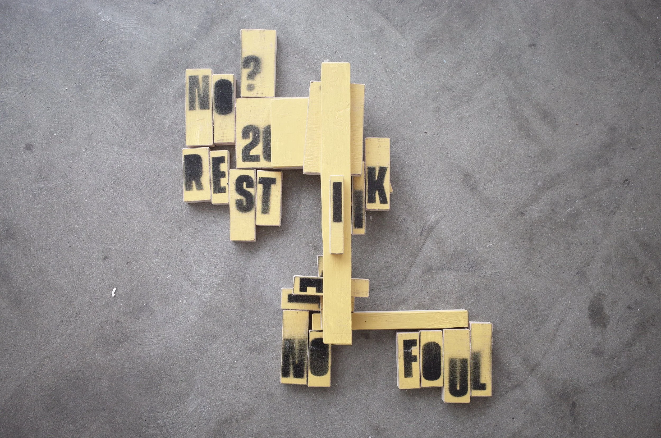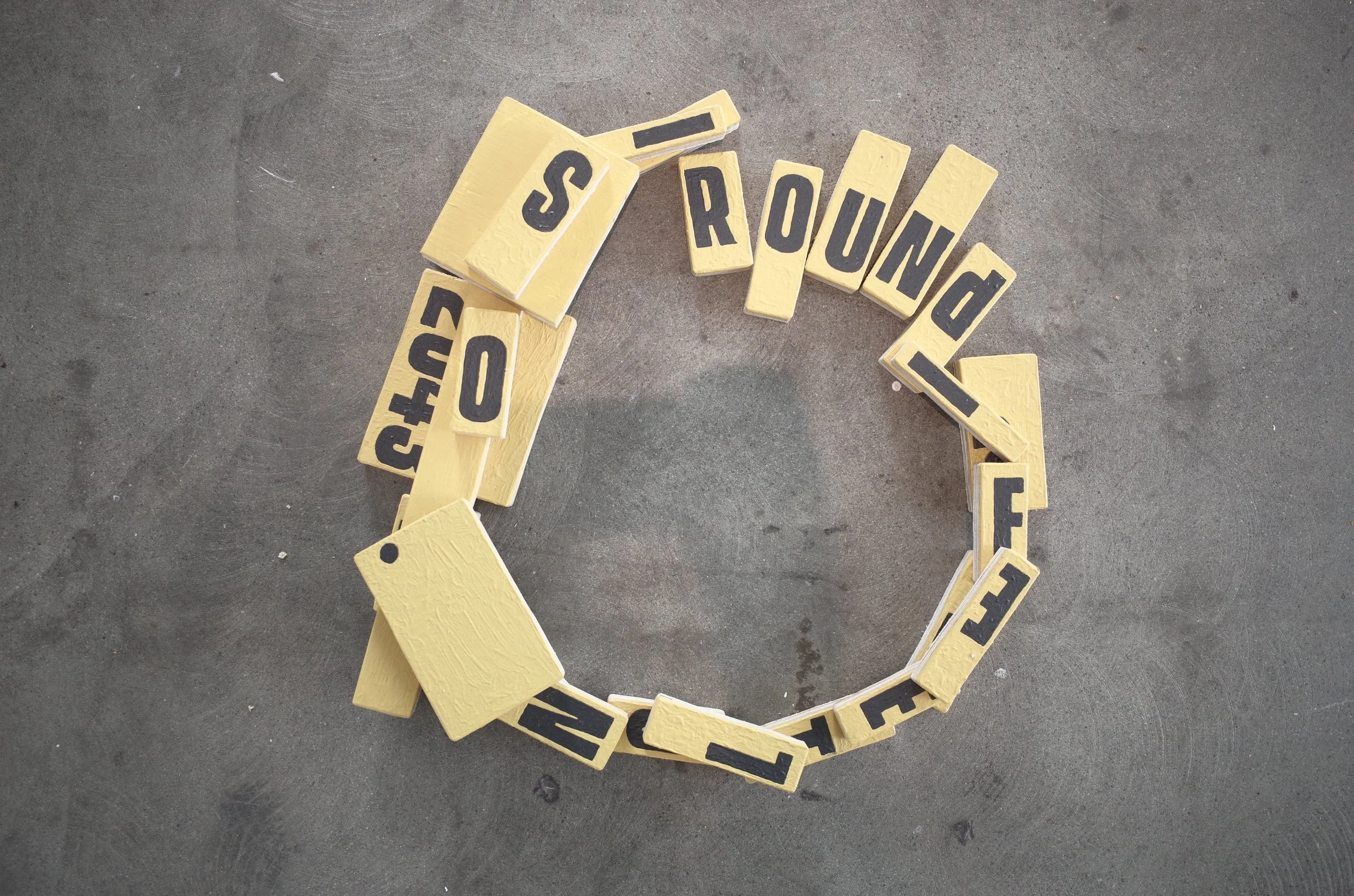 Structural Adjustment explores repetition, variation, chance, time and reconstruction within the everyday. It is a series of loops reaching towards each other through shape, colour and concept, growing tighter and forming circles.